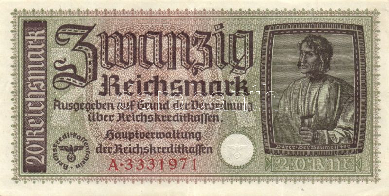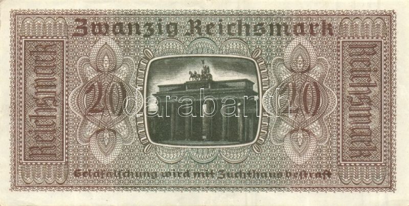 https://www.darabanth.com/en/139-Online-auction/139.0/Numismatics/Foreign-banknotes~10012/Nemet-3-Birodalom--kiadas-a-megszallt-teruletek-reszere-1940-45-20RM-TII~II405780
