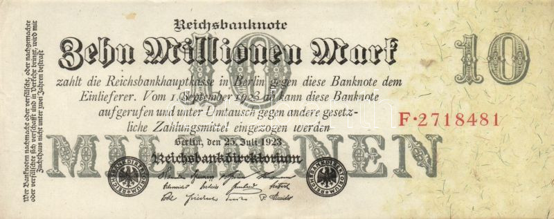 Német Birodalom / Weimari Köztársaság 1923. 10.000.000M T:II+ (kis saroktörés)