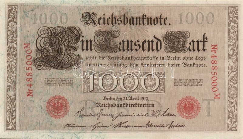 https://www.darabanth.com/en/139-Online-auction/139.0/Numismatics/Foreign-banknotes~10012/Nemet-BirodalomCsaszarsag-1910-1000M-piros-sorszammal-ketfele-papiron-6x-zold-sorszam~II405890