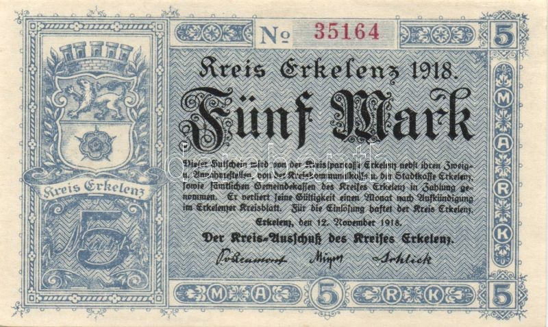 Német Birodalom/Weimari Köztársaság/Erkelenz 1918.11.12. 5M T:I- + Ném... https://www.darabanth.com/en/139-Online-auction/139.0/Numismatics/Foreign-banknotes~10012/Nemet-BirodalomWeimari-KoztarsasagErkelenz-19181112-5M-TI-plus-Nemet-BirodalomCsaszarsa~II406028