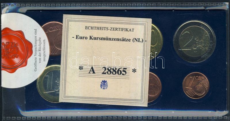 Hollandia 1999. 1c-2€ 8db klf forgalmi érme eredeti bontatlan tokban, tanúsítvánnyal! T:BU