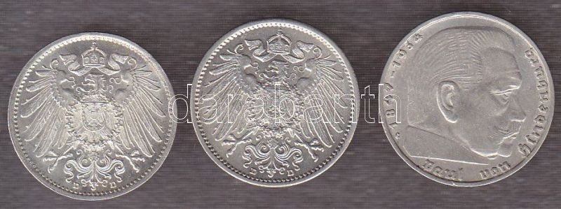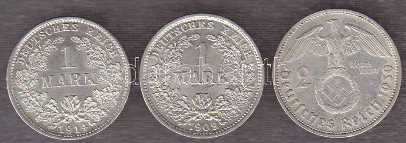 Német Birodalom/Császárság 1909D 1M Ag + 1914D 1M Ag + 1939. 2M Ag "Hi...