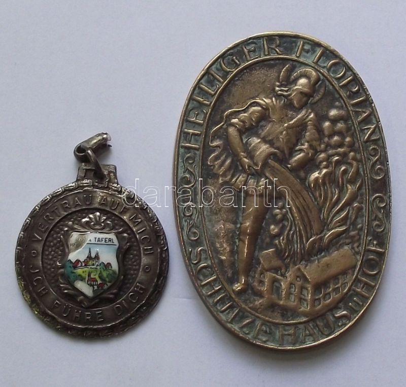 2db Szent Flórián érem, mint a tűzvészek elhárítója és az árvizekből mentő T:2,3+ zománc hiba