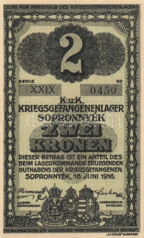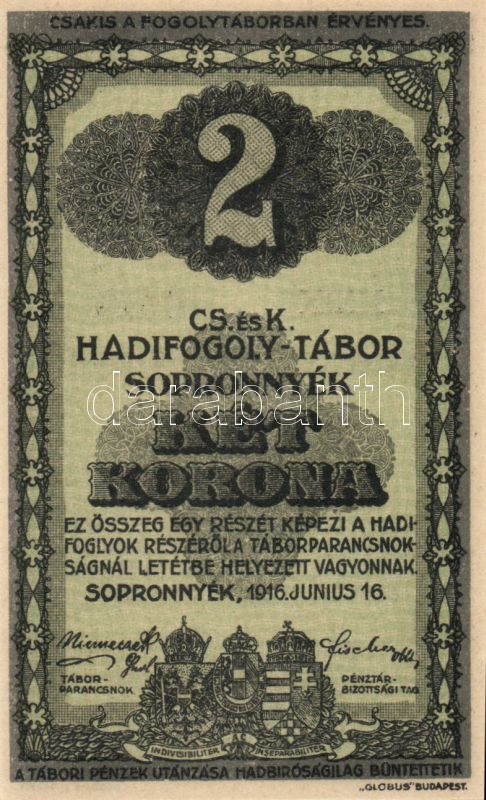 https://www.darabanth.com/en/139-Online-auction/139.0/Numismatics/Hungarian-and-foreign-emergency-notes-and-coins-tokens~10007/Sopronnyekhadifogolytabor-1916-junius-16-2K-TI~II404200