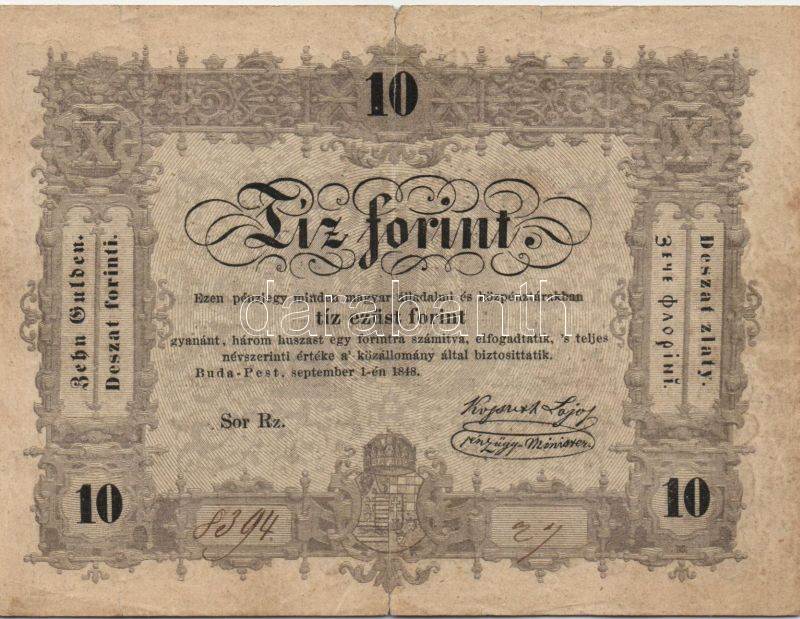 https://www.darabanth.com/en/139-Online-auction/139.0/Numismatics/Hungarian-banknotes~10008/1848-10Ft-Kossuth-banko-TIII-hajtasnal-beszakadas~II405969