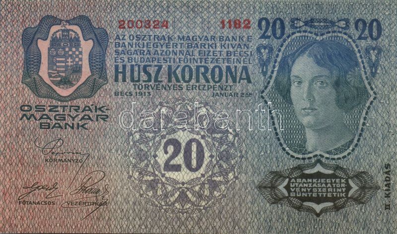 https://www.darabanth.com/en/139-Online-auction/139.0/Numismatics/Hungarian-banknotes~10008/1913-20K-5x-IIkiadas-vizszintes-piros-Deutschosterreich-felulbelyegzessel-egymas-utani~II406141