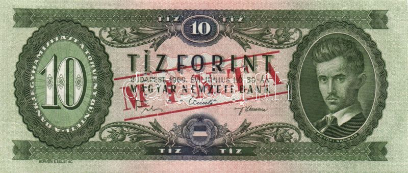 1969. 10Ft "MINTA" perforációval és felülnyomással "A 000" sorozatszám...