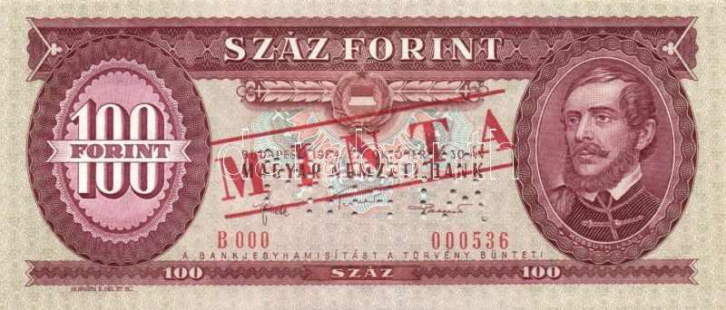 https://www.darabanth.com/en/139-Online-auction/139.0/Numismatics/Hungarian-banknotes~10008/1984-100Ft-MINTA-perforacioval-es-felulnyomassal-B-000-sorozatszammal-TI~II406927