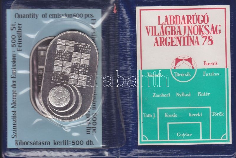1978. "Labdarúgó VB Argentina" Ag stadion formájú plakett eredeti csomagolásban tanúsítvánnyal! (70g) T:PP Csak 500db! RRR!!!