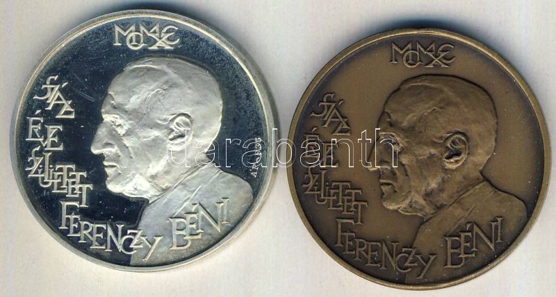 1990. "MÉE - 100 éve született Ferenczy Béni" Ag + Br emlékérem pár T:PP,1