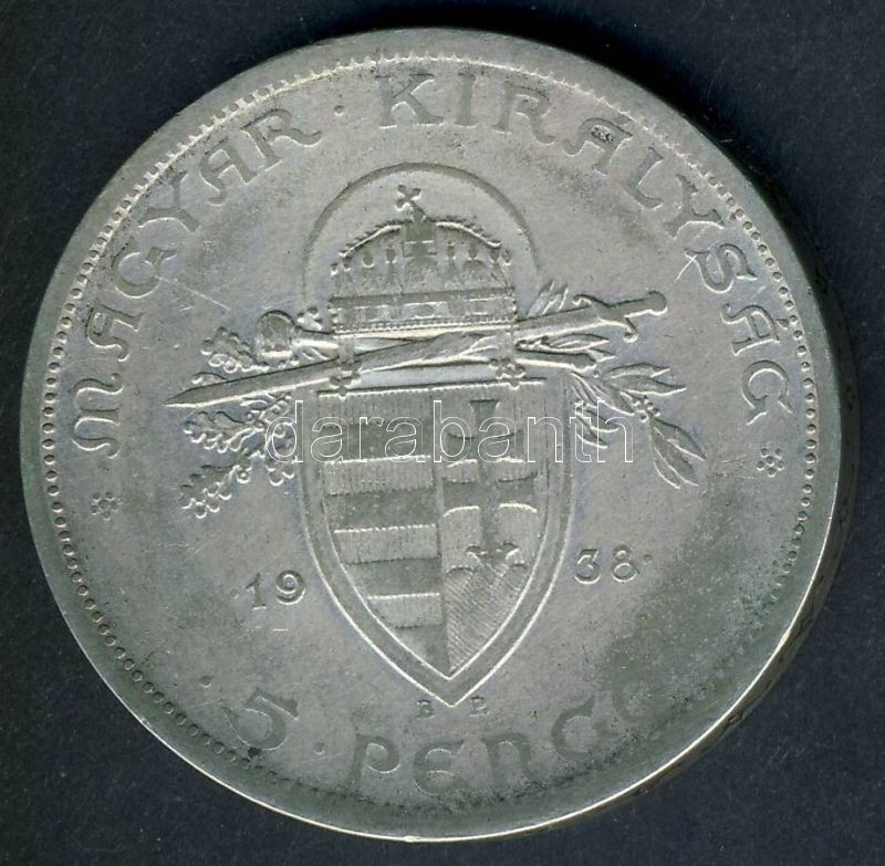 https://www.darabanth.com/en/139-Online-auction/139.0/Numismatics/Hungarian-metal-and-silver-coins~10009/1938-5P-Szent-Istvan-Ag-T3~II407492