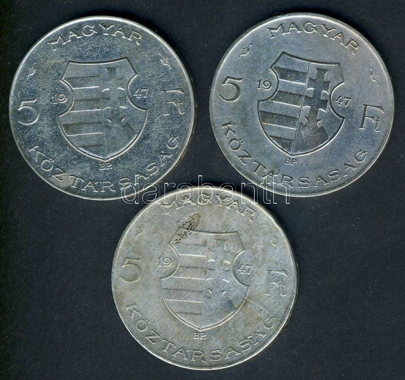 https://www.darabanth.com/en/139-Online-auction/139.0/Numismatics/Hungarian-metal-and-silver-coins~10009/1947-5Ft-Ag-3x-Kossuth-T2-3-ph~II406635