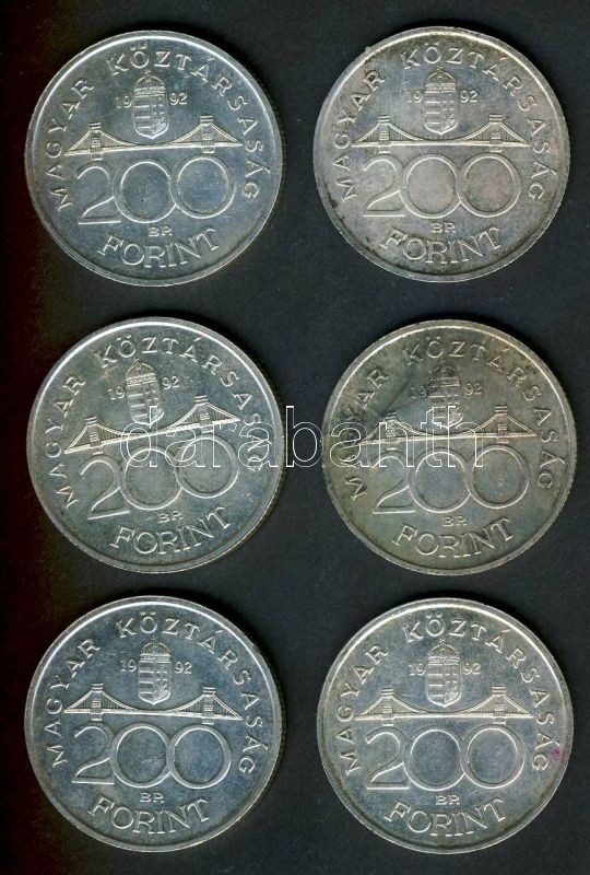 https://www.darabanth.com/en/139-Online-auction/139.0/Numismatics/Hungarian-metal-and-silver-coins~10009/1992-200Ft-Ag-MNB-6x-T1-2plus-2~II406557