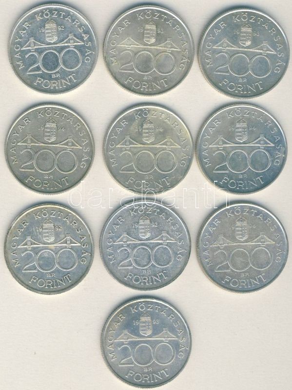 https://www.darabanth.com/en/139-Online-auction/139.0/Numismatics/Hungarian-metal-and-silver-coins~10009/1992-94-200Ft-Ag-Deak-es-MNB-10x-T2-3~II406721