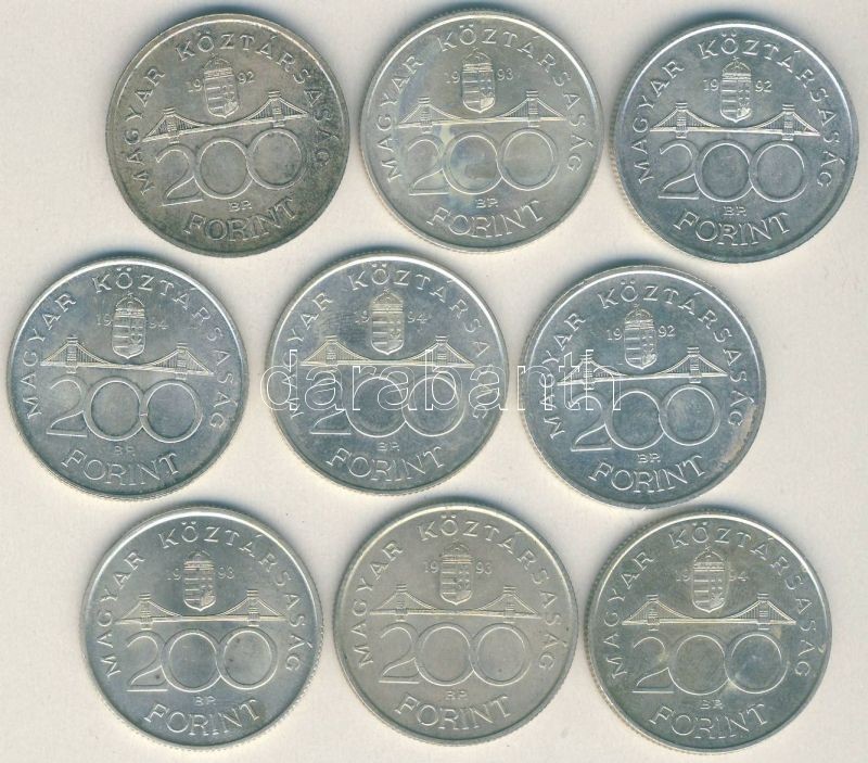 https://www.darabanth.com/en/139-Online-auction/139.0/Numismatics/Hungarian-metal-and-silver-coins~10009/1992-94-200Ft-Ag-MNB-plus-Deak-9x-T2-2-~II406556