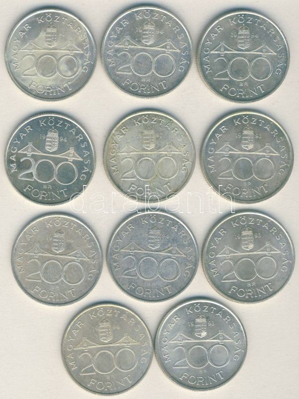 https://www.darabanth.com/en/139-Online-auction/139.0/Numismatics/Hungarian-metal-and-silver-coins~10009/1993-94-200Ft-Ag-Deak-es-MNB-10x-T2-3~II406715