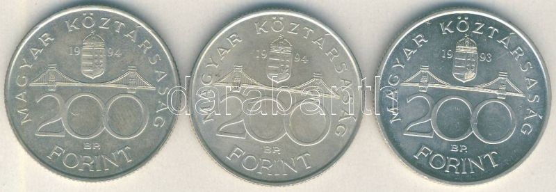 1993-94. 200Ft Ag "MNB" + "Deák" (3x) T:2