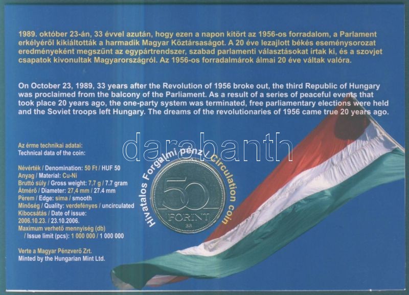 https://www.darabanth.com/en/139-Online-auction/139.0/Numismatics/Hungarian-metal-and-silver-coins~10009/2006-50Ft-1956-os-forradalom-50-evforduloja-elsonapi-veret-emleklapon-T1~II405372