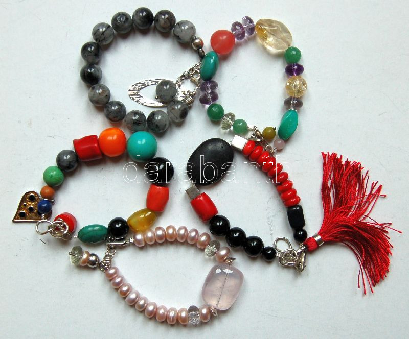 5 db féldrágakő karkötő ezüst (Ag) szerelékkel: korall, rózsakvarc, tenyészett gyöngy, ametrin, citrin, howlit, ónix, türkiz, stb.