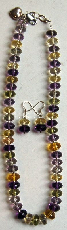 Fazettált ametrin nyaklánc hozzávaló fülbevalóval ezüst (Ag) szerelékk...