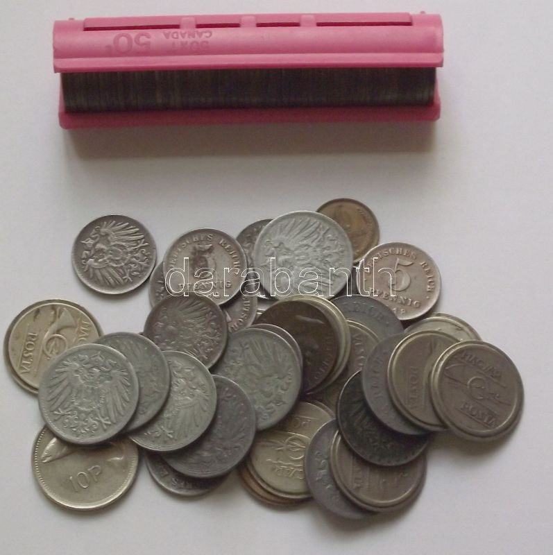 Vegyes érme és telefonérme tétel, benne ~60db holland 1c eredeti banki kötegelőben, német pfennigek T:vegyes