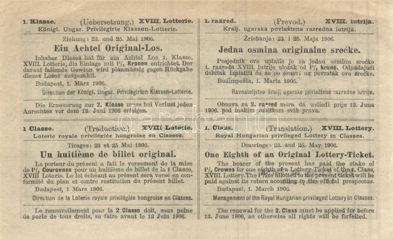 https://www.darabanth.com/en/139-Online-auction/139.0/Numismatics/Shares-Securities-and-Tickets~10006/1906-Magyar-Kir-Szabadalmazott-Osztalysorsjatek-elso-osztaly-XVIII-sorsjatek-egy-nyolcad-s~II403994