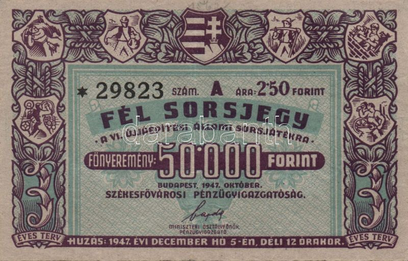 https://www.darabanth.com/en/139-Online-auction/139.0/Numismatics/Shares-Securities-and-Tickets~10006/1947-Fel-sorsjegy-50000Ft-a-VIUjjaepitesi-Allami-Sorsjatekra-TIIplus~II403972
