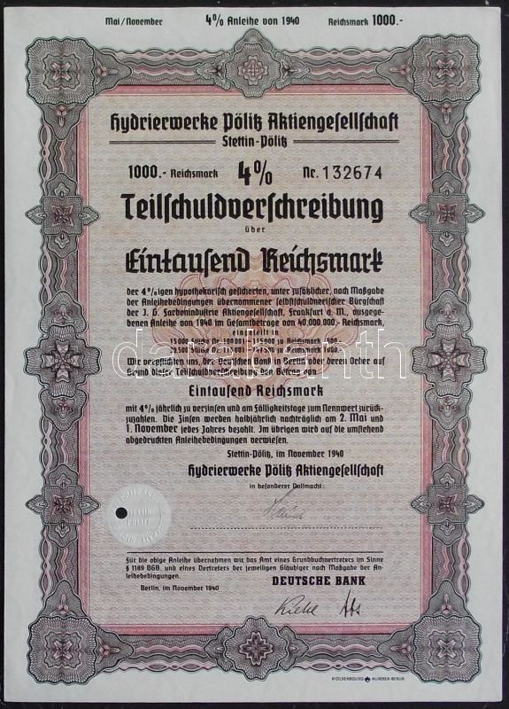 https://www.darabanth.com/en/139-Online-auction/139.0/Numismatics/Shares-Securities-and-Tickets~10006/Nemetorszag-1940-Hydrierwerke-Politz-Aktiengesellschaft-bemutatora-szolo-kotveny-1000RM-r~II405865