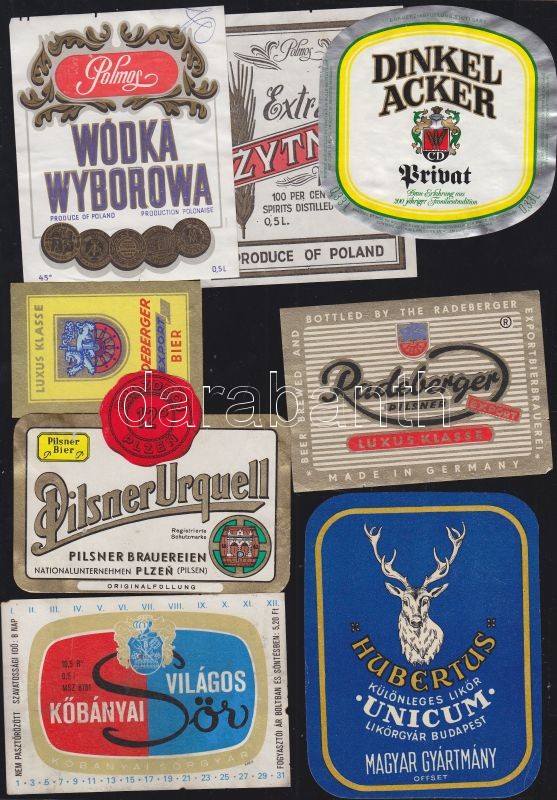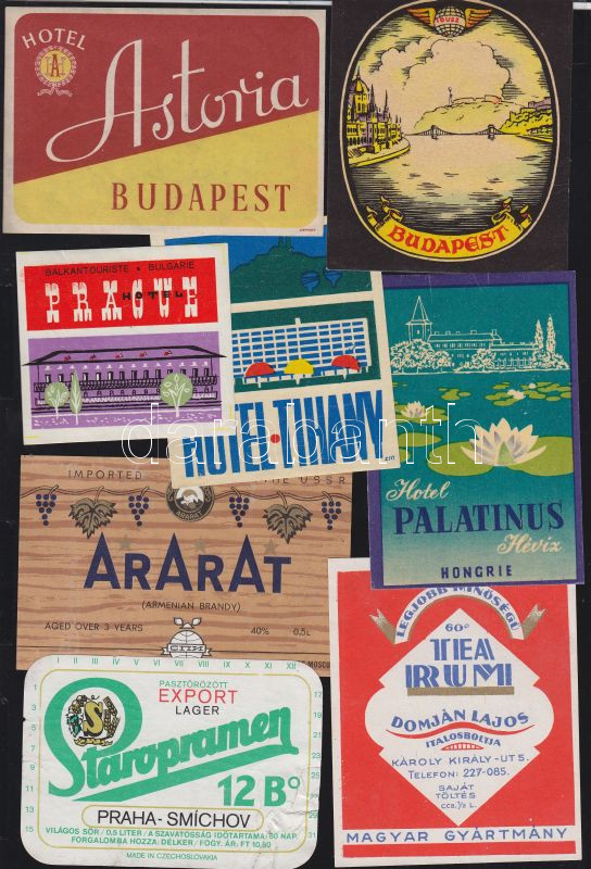 27db különféle ital- és bőröndcímke érdekes darabokkal