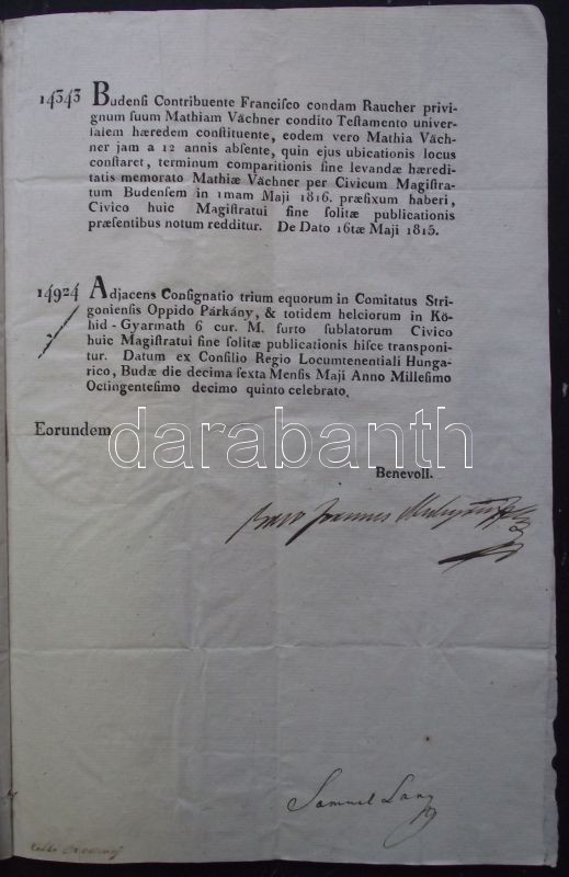 https://www.darabanth.com/en/139-Online-auction/139.0/Other-collectibles/Historical-documents-manuscripts~11005/1815-Helytartotanacsi-leirat-Mednyanszky-Janos-baro-Becs-hu-four-es-Lanyi-Samuel-saja~II408885