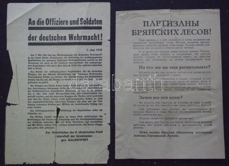 https://www.darabanth.com/en/139-Online-auction/139.0/Other-collectibles/Historical-documents-manuscripts~11005/1944-1945-II-vilaghaborus-nemet-es-szovjet-roplap-szakadt-WW-II-German-and-Soviet-flyers~II405073