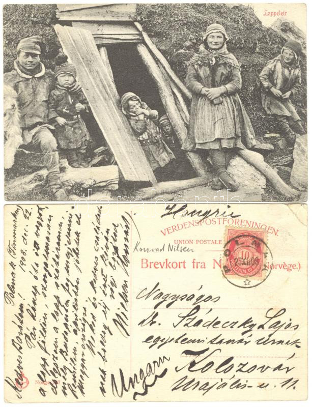 Description: 1908 Konrad Nielsen nyelvész, finnugrista Lappföldről, megjelenő lapp szótárának gyűjtőútjáról írt, magyar nyelvű képeslapja Szádeczky Lajos történésznek. /