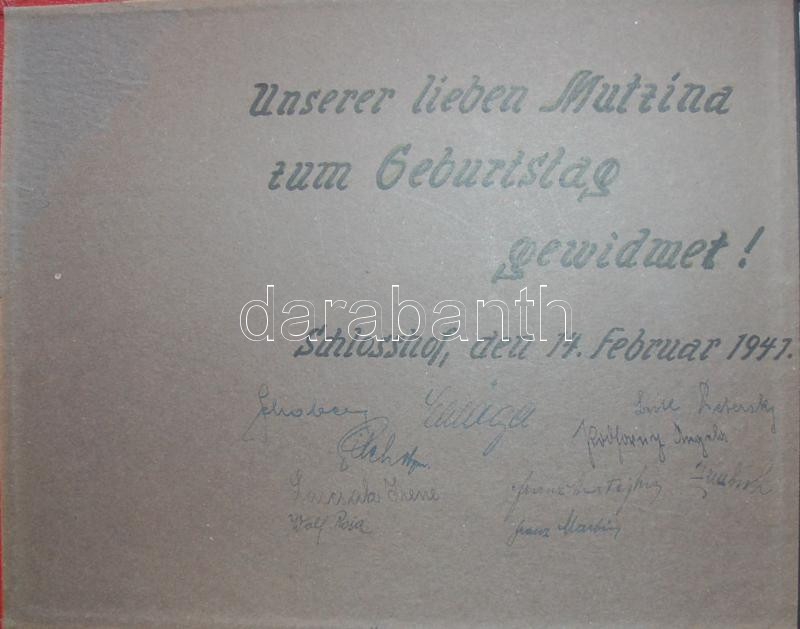 Description: 1941-1944 Fotóalbum az osztrák katonai lovasiskolaként és állomáshelyként szolgáló Schlosshofban készült fotókkal ott megfordult Wehrmacht-tisztekről, többek között Gottfried Barton vezérőrnagyról, a fotókon aláírásokkal és dedikációkkal /
