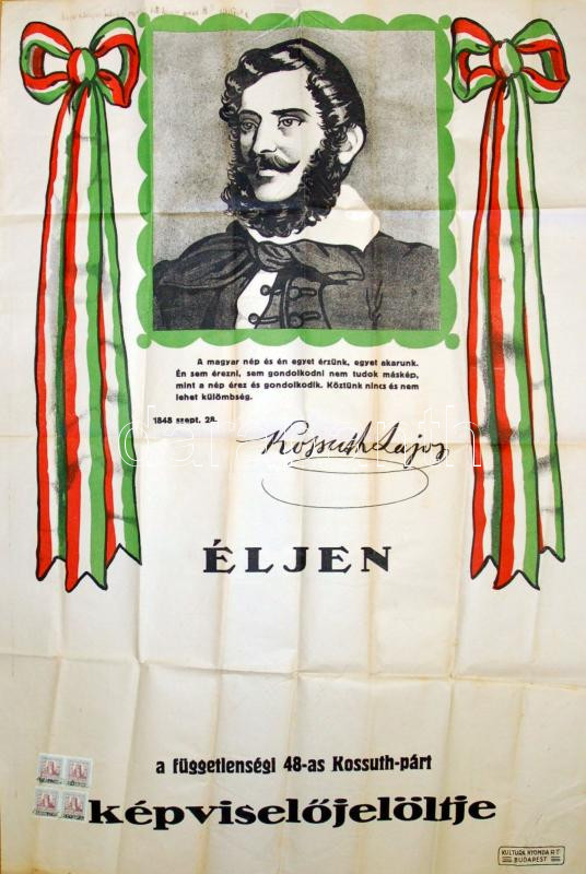 1922 A Függetlenségi 48-as Kossuth Párt választási plakátja. Kőnyomat.... https://www.darabanth.com/en/14-Major-auction/14.1/Art-and-collectibles/Printed-Materials~4105/1922-A-Fuggetlensegi-48-as-Kossuth-Part-valasztasi-plakatja-Konyomat-Kultura-nyomda-50-000~II542536