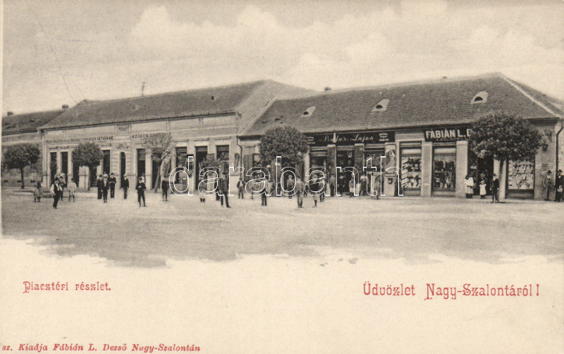 Nagyszalonta market place with the shop of Fábián L. Dezső