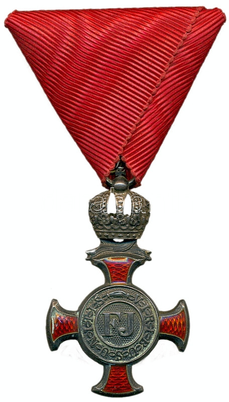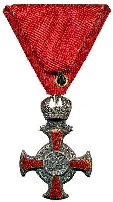 1869-1916. "Koronás Ezüst Érdemkereszt a vörös szalagon" ezüstözött br... https://www.darabanth.com/en/14-Major-auction/14.1/Numismatics/Military-and-Faleristics~4039/1869-1916-Koronas-Ezust-Erdemkereszt-a-voros-szalagon-ezustozott-bronz-kituntetes-kari~II541821