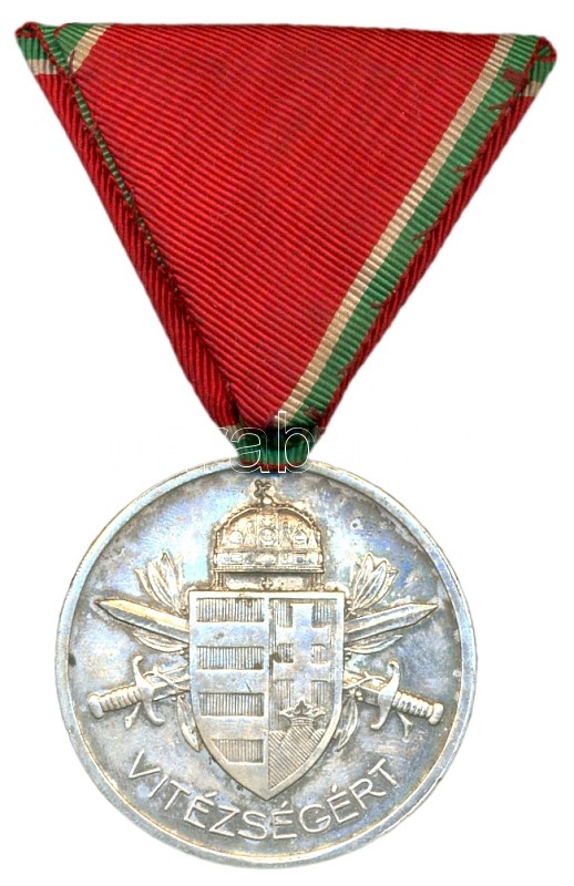 1939. "Magyar Nagy Ezüst Vitézségi Érem" fémjel nélküli fehér fém vált... https://www.darabanth.com/en/14-Major-auction/14.1/Numismatics/Military-and-Faleristics~4039/1939-Magyar-Nagy-Ezust-Vitezsegi-Erem-femjel-nelkuli-feher-fem-valtozata-mellszalaggal-~II541721