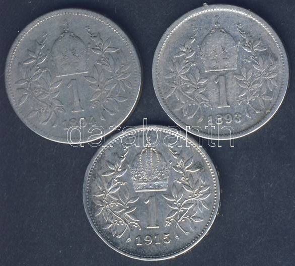Ausztria 1893-1915. 1K Ag (3x) klf évszámmal T:2,3