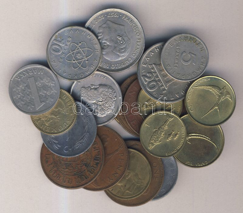 Kis világpénz tétel: Görögország, Szlovénia, Nagy-Britannia, Holland Kelet-India, Törökország, Spanyolország, Új-Zéland pénzei T:vegyes összesen 20db
