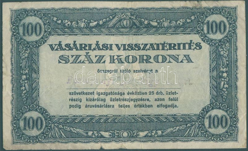 https://www.darabanth.com/en/140-Online-auction/140.0/Numismatics/Hungarian-and-foreign-emergency-notes-and-coins-tokens~10007/1920-as-evek-eleje-100K-vasarlasi-visszaterites-Pestujhelyi-H-Fogy-es-Ert-Szov-be~II400314