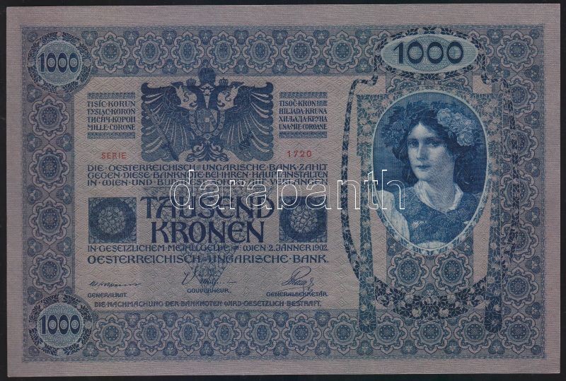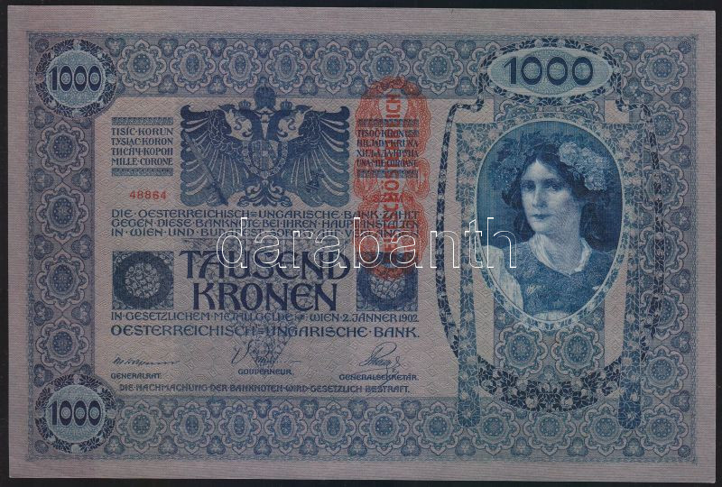 https://www.darabanth.com/en/140-Online-auction/140.0/Numismatics/Hungarian-banknotes~10008/1902-1000K-mindket-oldal-nemet-nyelvu-Osztrak-Magyar-Bank-I-kiadas-Auflage-piros-Deutsch~II412753