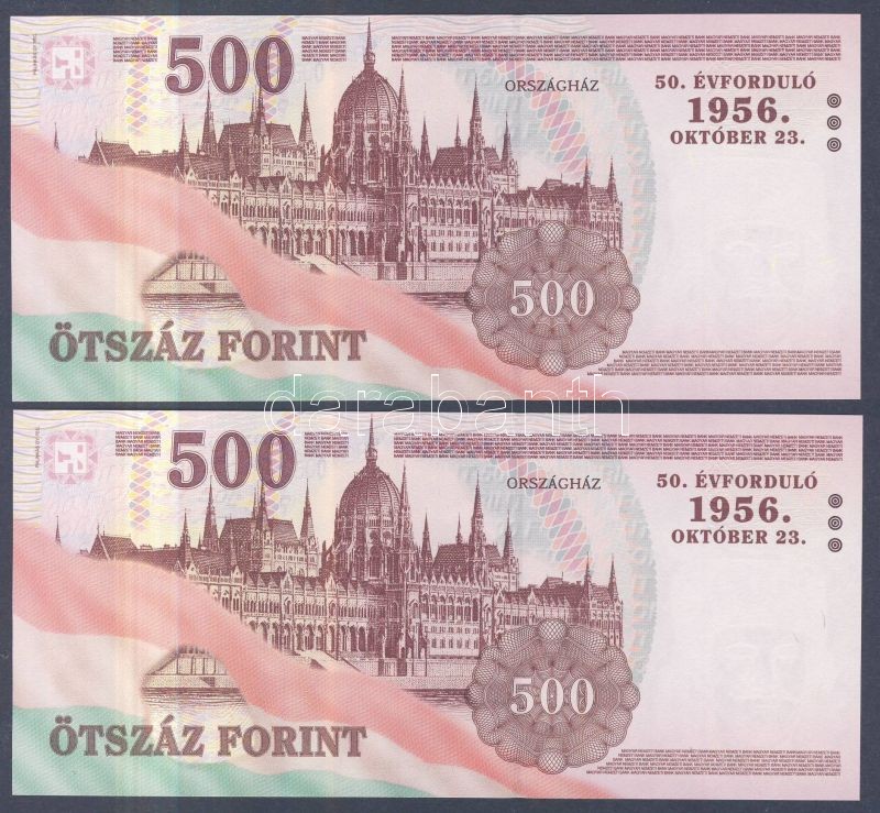 2006. 500Ft "1956-os forradalom évfordulója" (2x) "EC" széria, egymáshoz közeli sorszámúak T:I