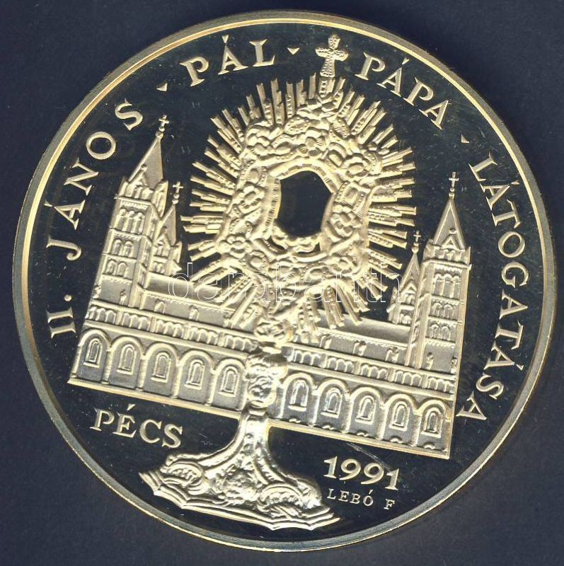 1991. "Napjaink magyar történelme - II. János Pál Pápa látogatása-Pécs" nagyalakú, piefort (vastag), aranyozott emlékérem (d:65mm) T:PP