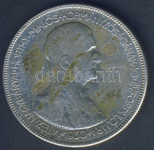 https://www.darabanth.com/en/140-Online-auction/140.0/Numismatics/Hungarian-metal-and-silver-coins~10009/1930-5P-Ag-Horthy-jobbra-T3-ph~II412372