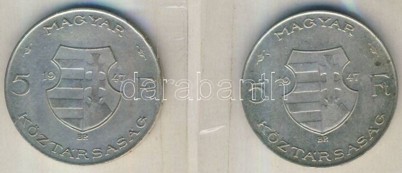 https://www.darabanth.com/en/140-Online-auction/140.0/Numismatics/Hungarian-metal-and-silver-coins~10009/1947-5Ft-Ag-2x-Kossuth-T2-pici-ph~II410368