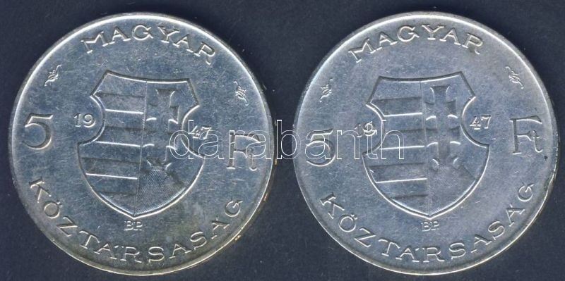 1947. 5Ft Ag (2x) "Kossuth" T:3+