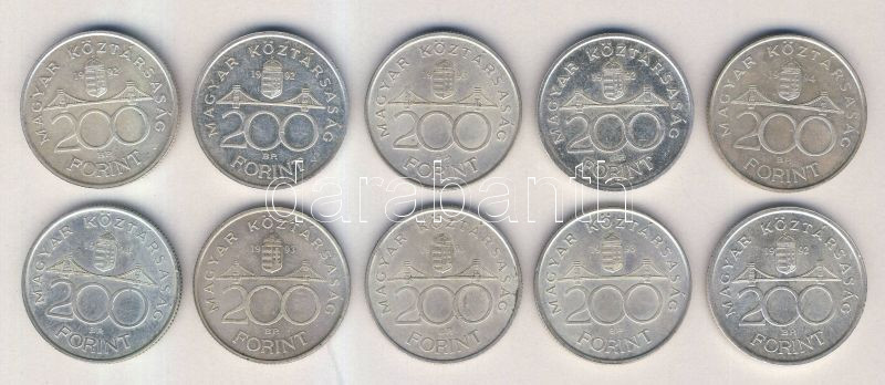 https://www.darabanth.com/en/140-Online-auction/140.0/Numismatics/Hungarian-metal-and-silver-coins~10009/1992-94-200Ft-Ag-MNB-10x-T2-3~II412268