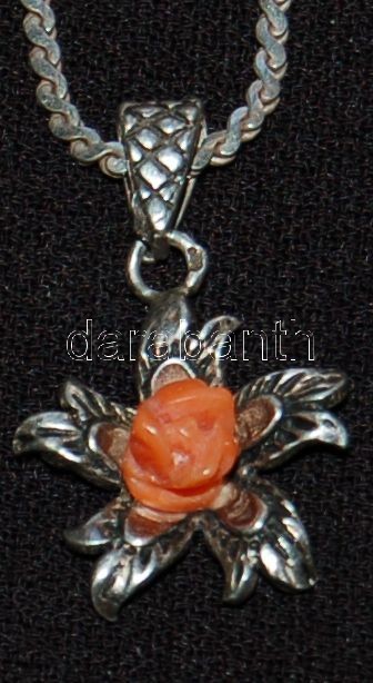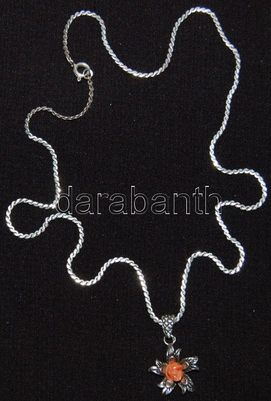 Ezüst (Ag) nyaklánc nemes korallal díszített ezüst medállal 6,88 gr