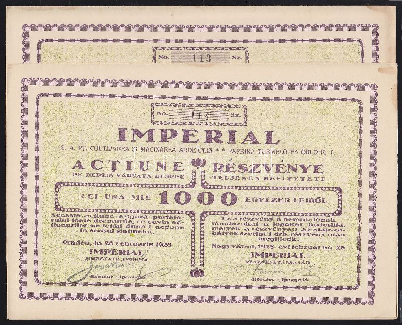 https://www.darabanth.com/en/140-Online-auction/140.0/Numismatics/Shares-Securities-and-Tickets~10006/1928-Nagyvarad-Paprika-Rt-1000L-2x-reszvenye-egymast-koveto-sorszammal-TII~II412822