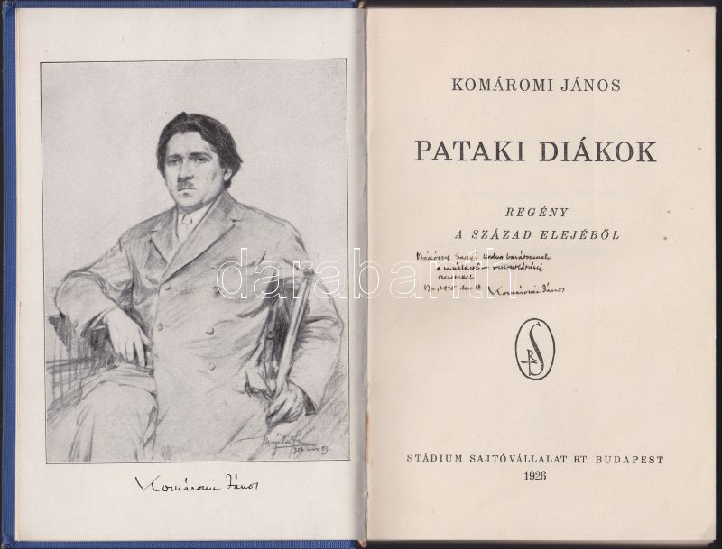 https://www.darabanth.com/en/140-Online-auction/140.0/Other-collectibles/Books-other-rarities~40022/Komaromi-Janos-Pataki-diakok-Bp-Dick-Mano-Dedikalt-elso-kiadas-Aranyozott-sorozati-vaszo~II412015